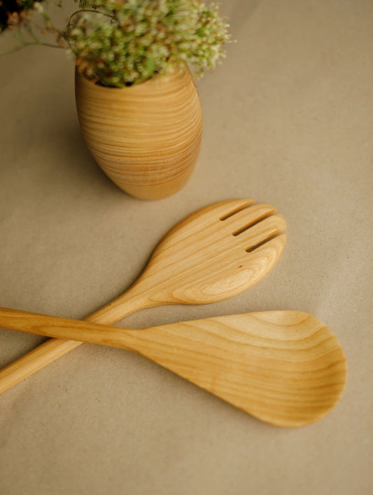 Q97 - Lot de cuillères à salade en bois de cerisier