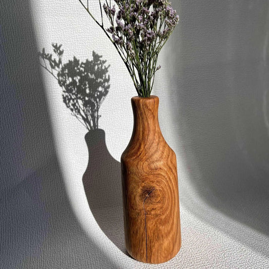 Wedelia. Le vase en forme de bouteille en bois de chêne rouge